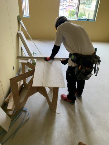 今は、グラスウール充填中!